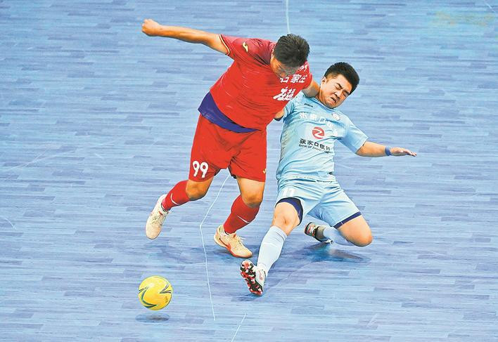 河北省五人制足球超级联赛拼抢瞬间。新华社发(陈其保摄)